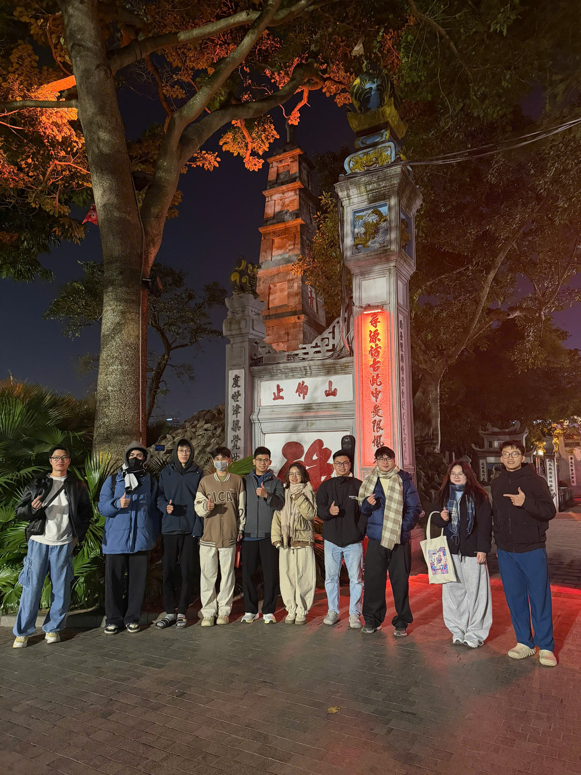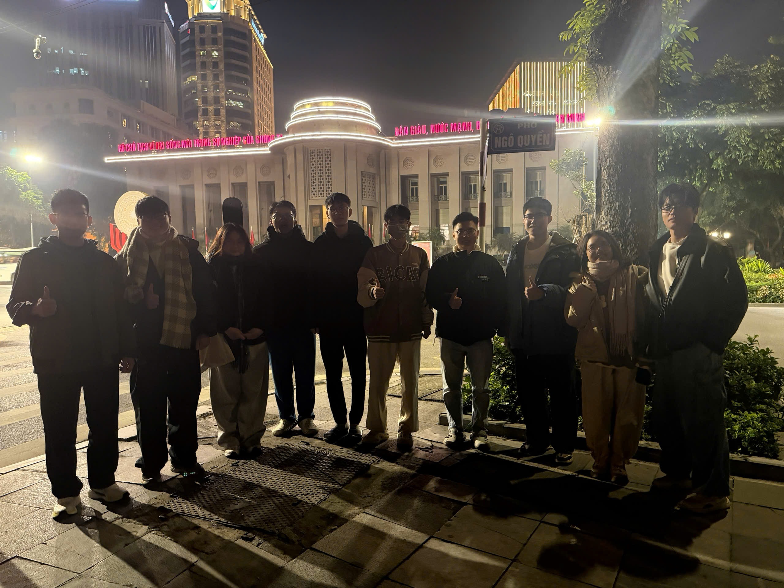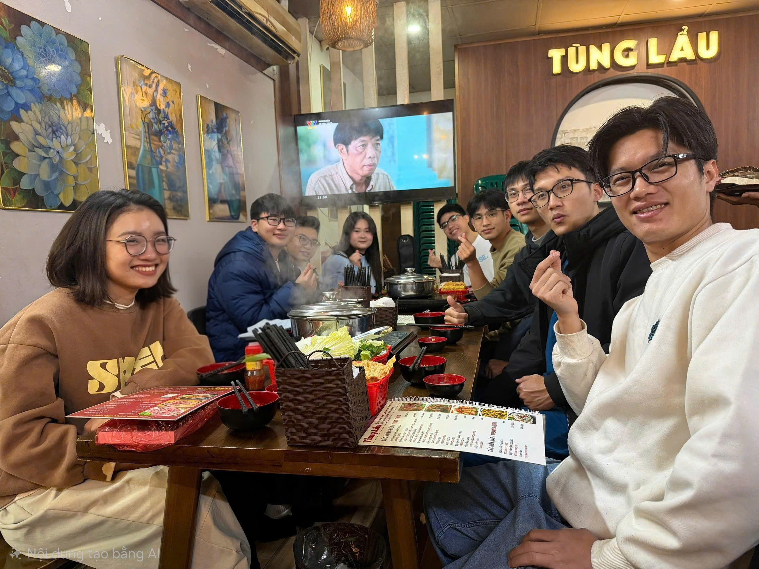 Khi phố lên đèn, cả nhóm quây quần bên nồi lẩu trên phố Phùng Hưng. Khói lẩu bốc lên, mang theo mùi nước dùng, tiếng cười, và những câu chuyện đan xen giữa nghiên cứu và đời sống.