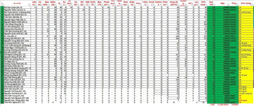 - Đặng Duy Hiển 7 x 50K (do dưới 8 trận)