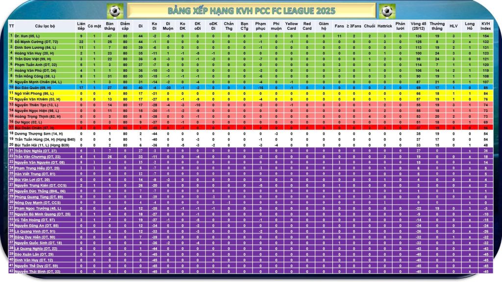 Bảng xếp hạng KVH vòng cuối cùng của Mùa giải PCC fC League 2025
