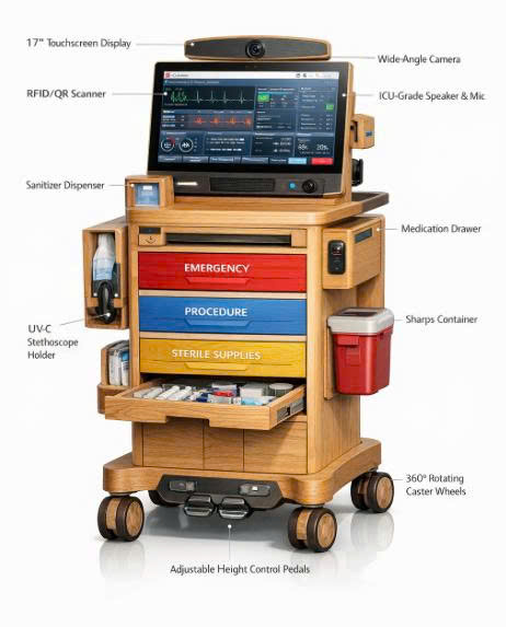 Trong bệnh viện, xe đi buồng vốn chỉ là một công cụ cơ học: đẩy thuốc, mang hồ sơ, chở dụng cụ. ICU-Go đã thay đổi hoàn toàn cách tiếp cận này.