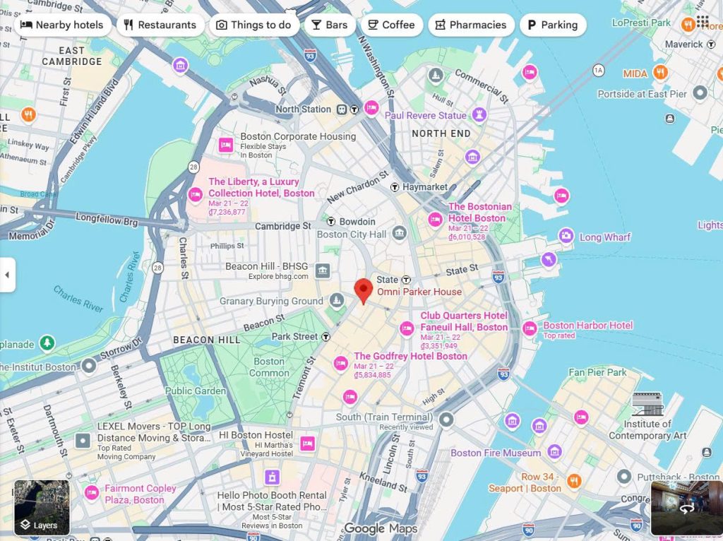 Trong ký ức về Boston, địa điểm được nhắc đến nhiều nhất là Omni Parker House, 60 School Street. Lịch sử chính thức của khách sạn ghi rõ rằng vào năm 1912, Ho Chi Minh làm việc tại khu bakeshop và khách sạn còn lưu giữ “marble table” gắn với câu chuyện ấy. Báo cáo lịch sử của thành phố Boston cũng xếp Hồ Chí Minh vào nhóm những nhân vật lịch sử quan trọng từng làm việc tại Parker House.