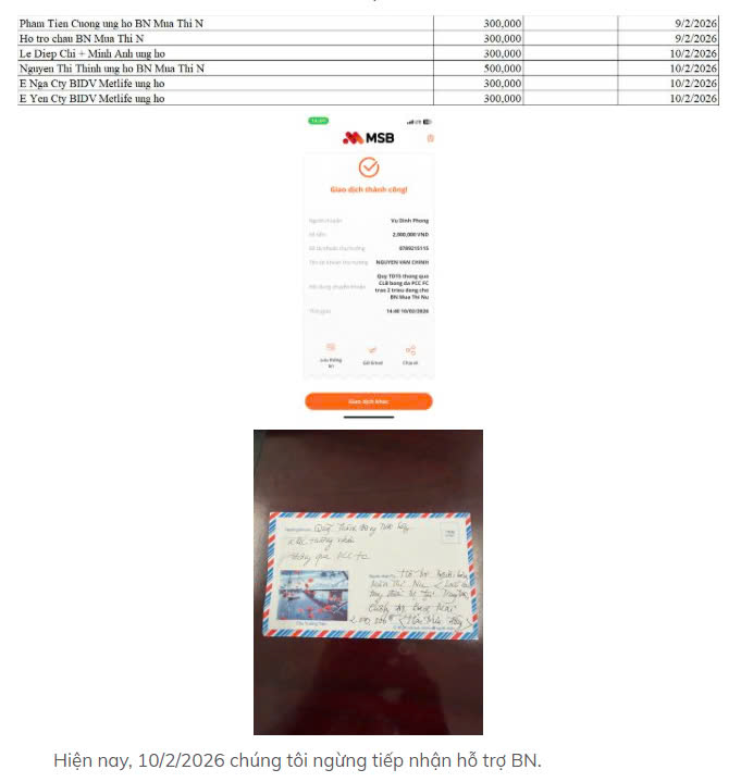 Ngay sau khi hoàn cảnh đặc biệt khó khăn của bệnh nhân được chia sẻ, các thành viên PCC fC và Fan Club đã nhanh chóng lan tỏa thông tin, kêu gọi hỗ trợ. Những đóng góp có thể nhỏ về giá trị vật chất nhưng lớn lao về tình người đã giúp:
