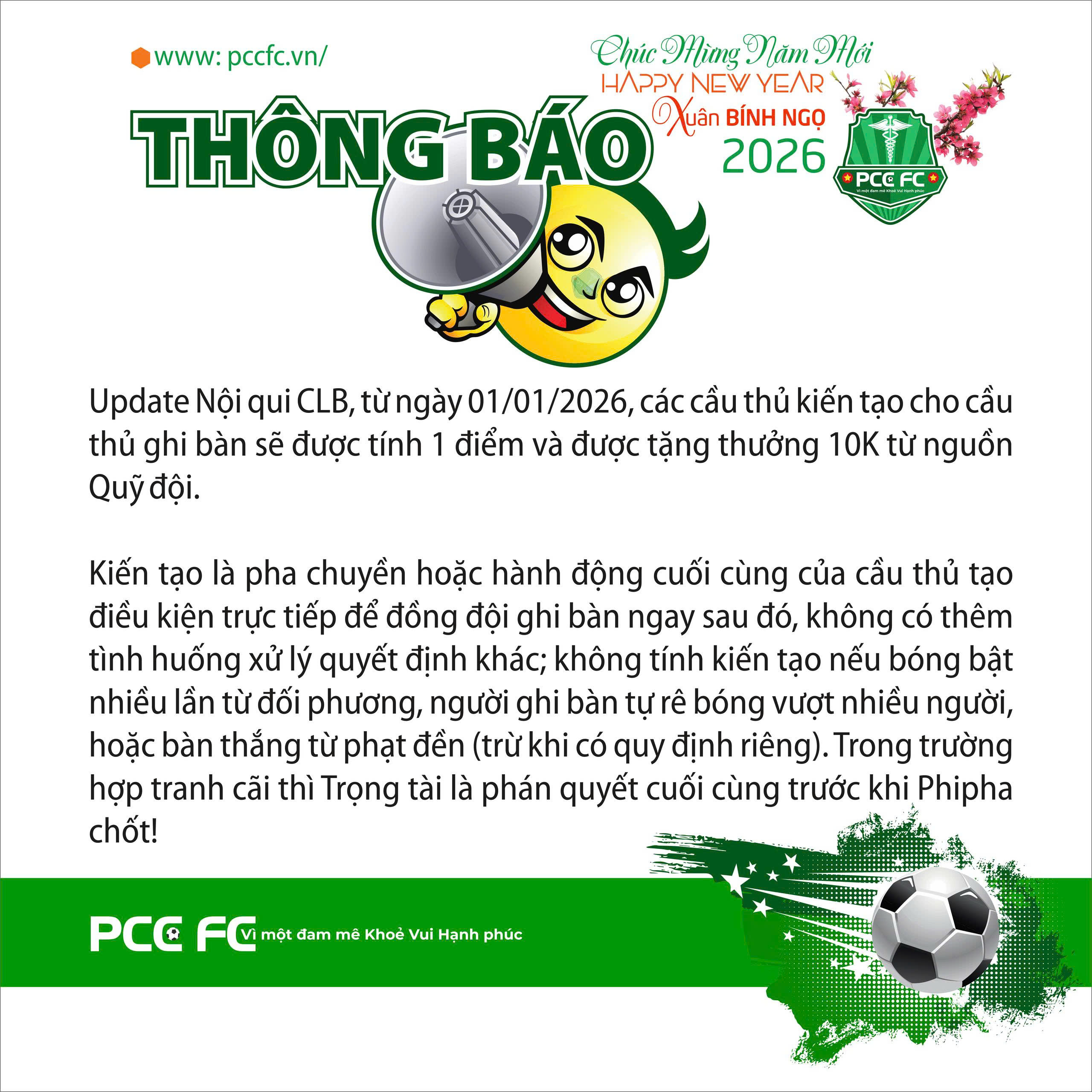 Luật mới 2026 chính thức áp dụng: cầu thủ kiến tạo được thưởng 10K – và ngay lập tức phát huy tác dụng khi trận đấu tràn ngập các pha phối hợp đẹp siêu đẹp mắt. Không thẻ vàng – bóng đá tinh tế, fair-play. Chúc mừng Long Hổ hạnh phúc. Chúc mừng PCC FC và fans đã được chứng kiến trận cầu hấp dẫn.