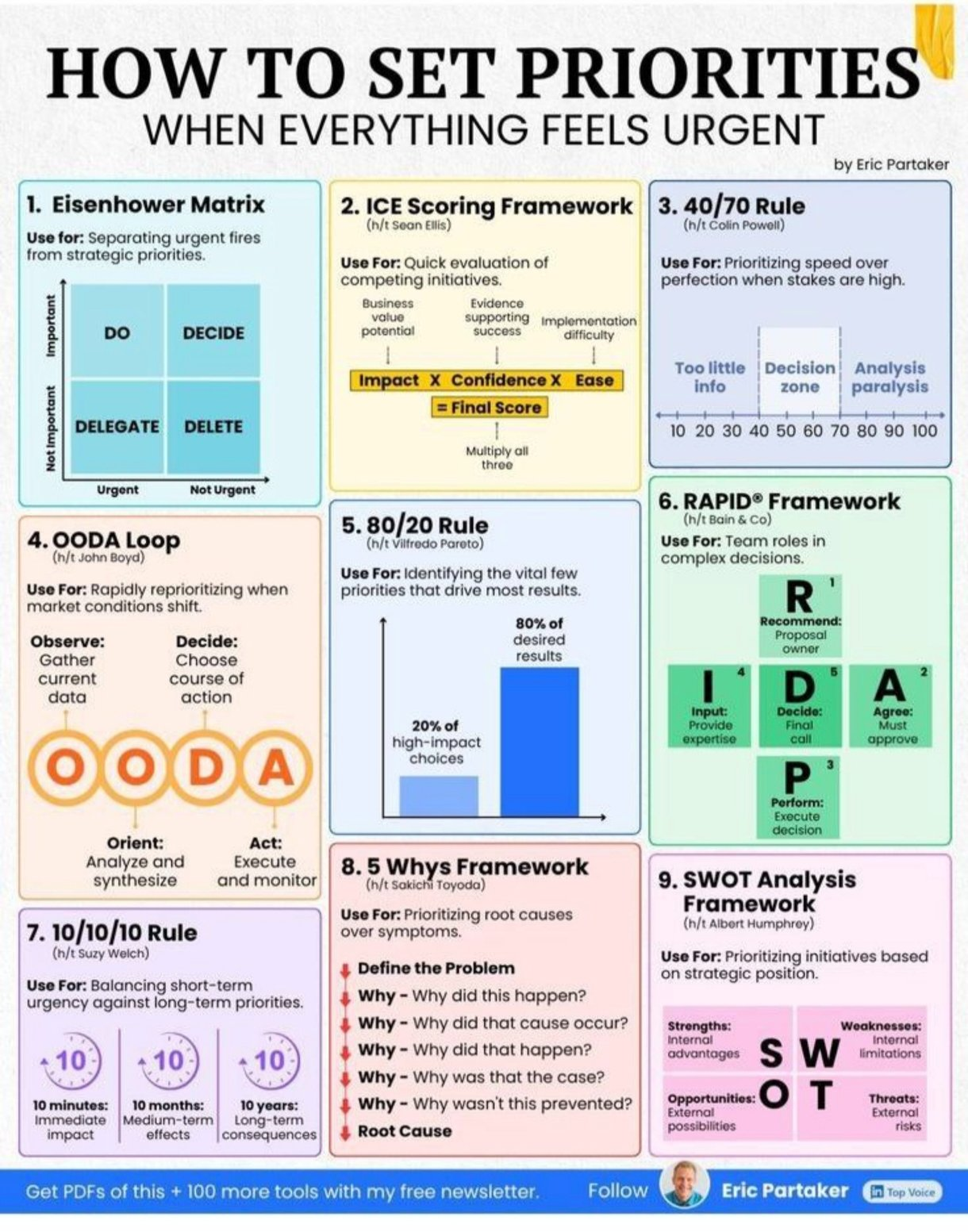 Trong nghiên cứu khoa học, mọi thứ đều có vẻ quan trọng: số liệu cần kiểm tra, biểu đồ cần dựng, bài báo cần sửa, hồ sơ cần hoàn thiện. Áp lực thời gian, áp lực chất lượng, áp lực kỳ vọng đan xen khiến ta dễ rơi vào vòng xoáy “việc nào cũng khẩn cấp”. Nhưng những nhóm nghiên cứu mạnh nhất không phải là những nhóm làm nhiều hơn tất cả, mà là những nhóm biết ưu tiên đúng. Và khi chúng ta học cách ưu tiên hóa công việc bằng tư duy chiến lược – dù chỉ một chút mỗi ngày – chúng ta sẽ bước nhanh hơn, xa hơn, và bền vững hơn. Dưới đây là tinh thần của 9 mô hình ưu tiên hóa, được tái hiện thành một triết lý làm việc dành riêng cho Nhóm NCKH.