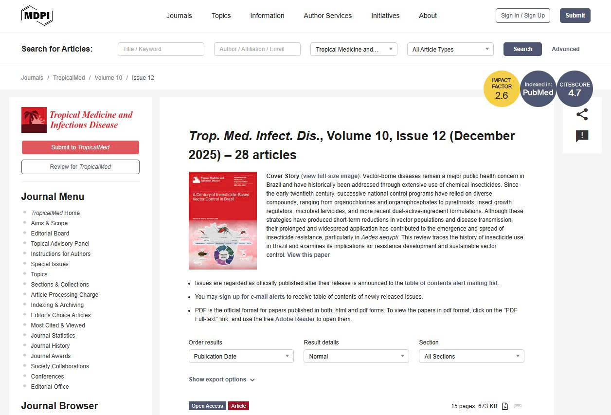 PCC Sci – Thăng Long, ngày 28/12/2025, một công trình nghiên cứu khoa học có sự tham gia của các nhà khoa học Việt Nam vừa được công bố trên Tropical Medicine and Infectious Disease – Tạp chí khoa học quốc tế thuộc hệ thống MDPI, chuyên sâu trong các lĩnh vực y học nhiệt đới, bệnh truyền nhiễm, độc chất học và sức khỏe toàn cầu. Tạp chí hoạt động theo mô hình truy cập mở (open access), được cộng đồng khoa học quốc tế công nhận và trích dẫn rộng rãi.